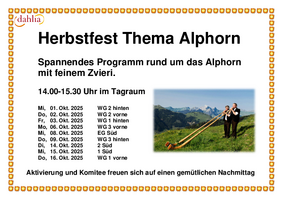 ganzer Monat | 14.00 h | Herbstfest auf den Wohngruppen: Thema Alphorn |
